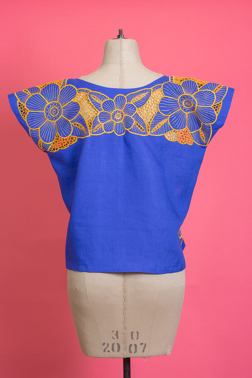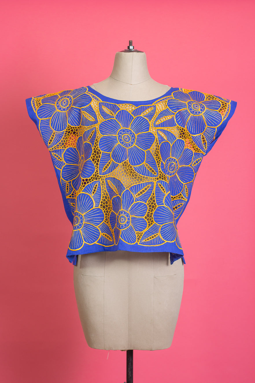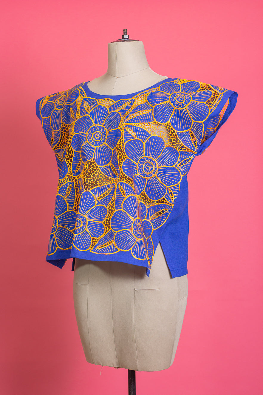 Blouse, 100% cotton embroidered on a pedal machine by Mayan artisans from Dzitnup, Yucatán.